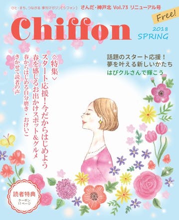 これまで神戸・三田で愛されてきた季刊マガジンCHIFFONが冬号を休刊し、運営、編集部を有限会社ChiffonからC-Couleur(代表 森田亜由美)へ移行し、2018年春号より「Chiffonさんだ・神戸北」として、新スタートを迎えます。