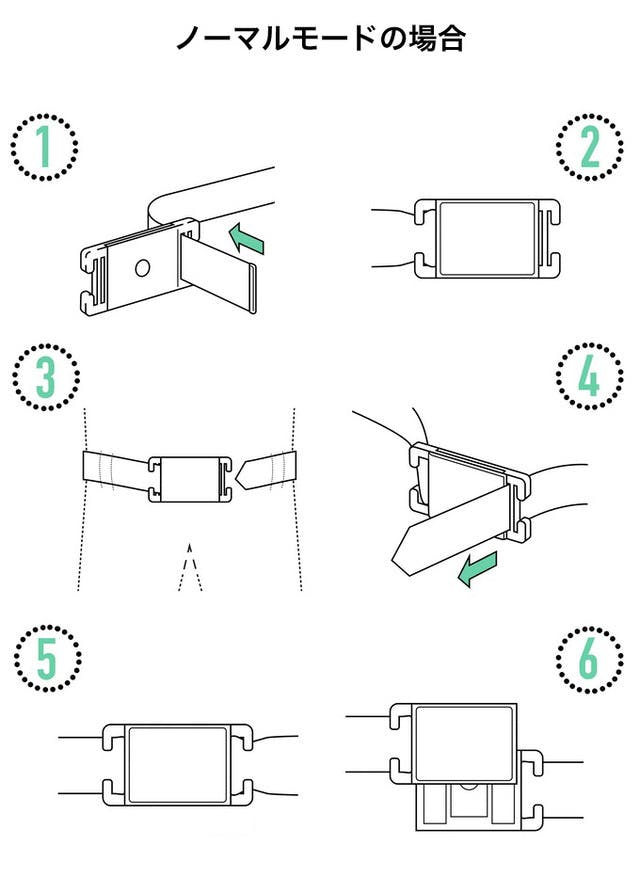 ノーマルモードでは、ベルトの余り部分が外に見えてカジュアルな印象に。「Xpand」のロゴも見せて、アクセントにもなります。