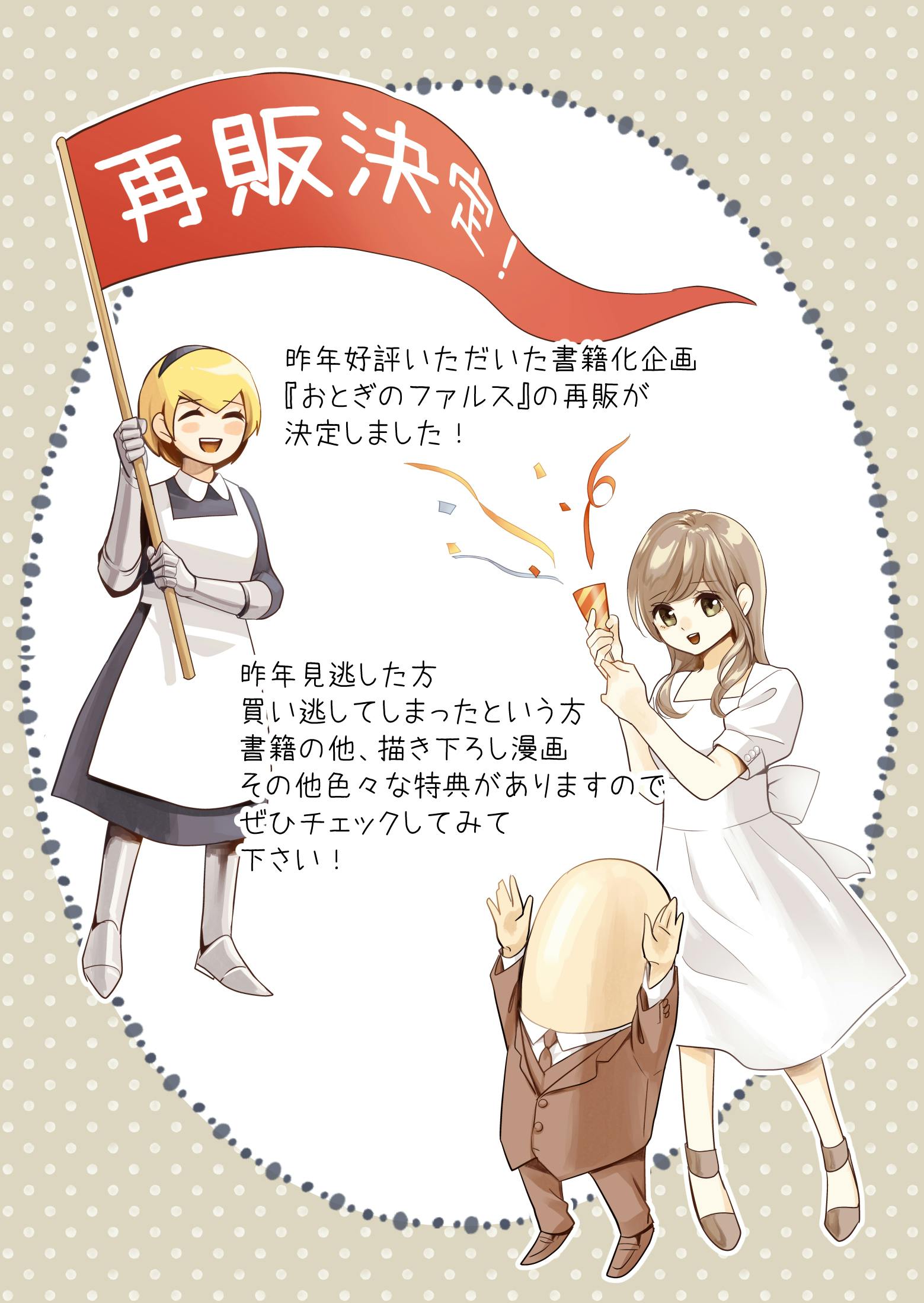 この度、皆様からの熱いご要望を受けて2020年1月に実施した『おとぎのファルス』全話書籍化プロジェクトの再販が決定致しました。書籍の再販や新たなグッズ化企画も設けておりますので、是非お楽しみ頂けたら幸いございます。早速ですが下記より詳細をご確認ください。