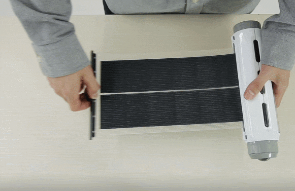 しています。引き出すと長さ43cm、幅14cmの大型ソーラーパネルが現れます。