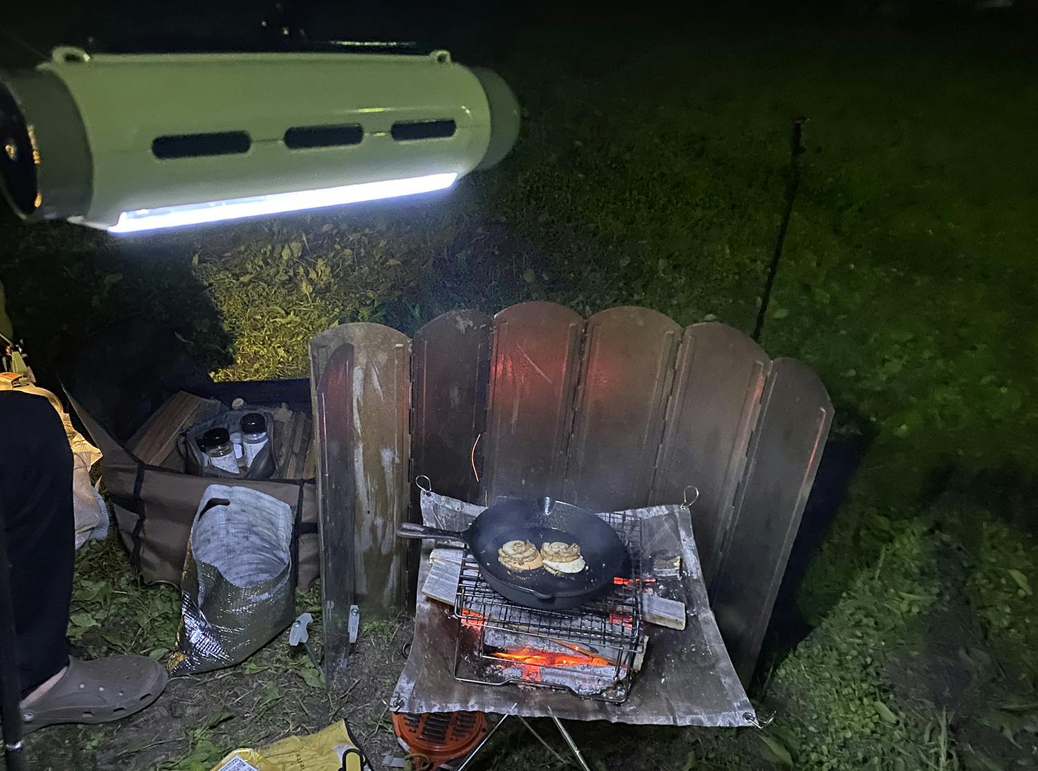 明かりも1晩程度なら乾電池のランプでよいでしょうが、連泊となると電池切れ