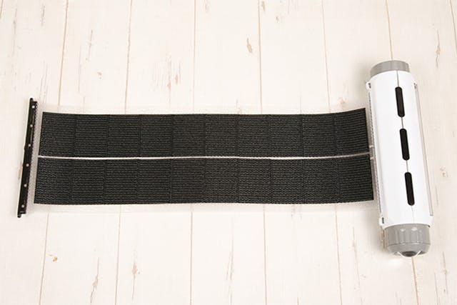 この【tovos】は巻き取り式で本体にくるくる巻ける超薄型ソーラーパネルを搭載