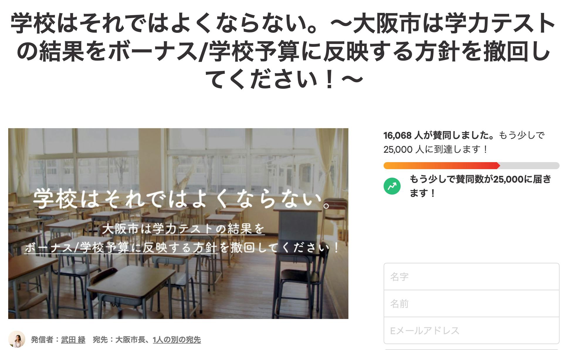 しかし、個人のSNSなどで発信された現場の「声」はあくまで私的なもので、社会には届いていないように感じました。「この声を見える化し、世の中に届くかたちにしなければ」と思った私は、この方針に反対するネット署名をしようと決意しました。署名は瞬く間にシェアされ、最終的に1万6千人筆以上が集まりました。その後、集めた署名は教育委員会と市長宛てに提出。多くの市民や教職員、団体の努力により、方針は実質見送りとなりました。