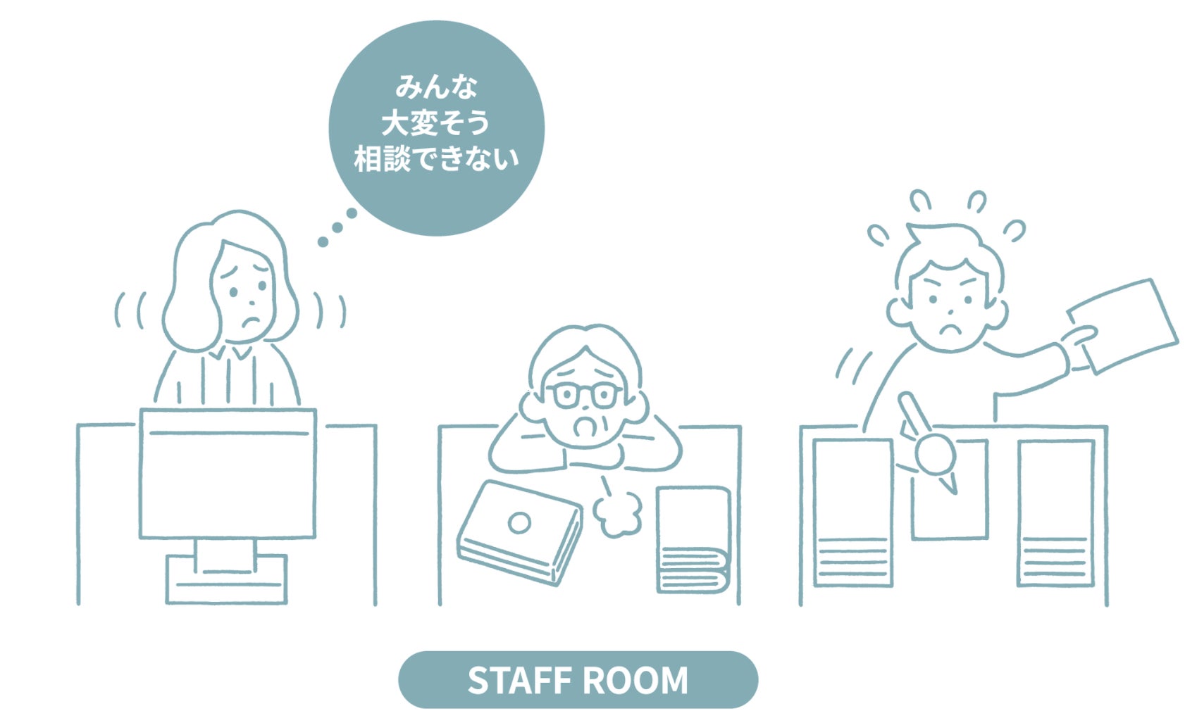 学習内容がわからず授業についていけない子、学校のルールに疑問を感じながら過ごす子、授業中も机に突っ伏して寝ている子・・・。多様な子どもが過ごす学校で、必死に働きながら、困り感や疲労感を抱えている先生は、決して少なくありません。
