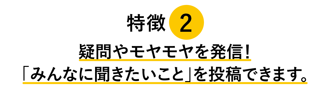 ・ユーザーが書き込める「みんなに聞きたいこと」というコーナーがあります。