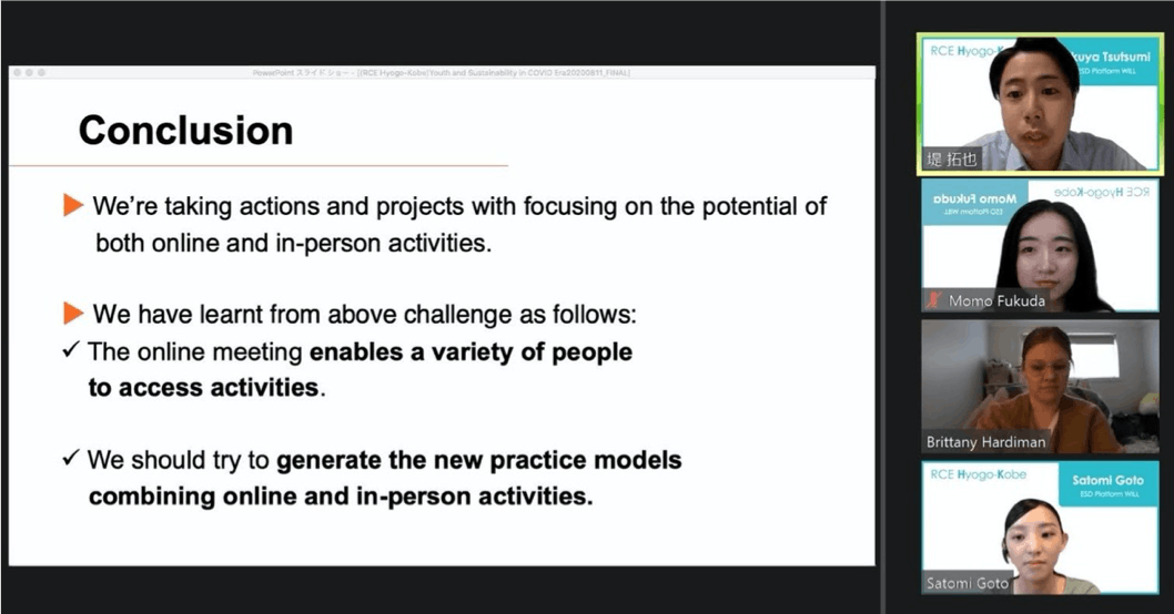 RCE Asia-Pacific Region主催のウェビナー"Youth & Sustainability"にて、世界のユースとコロナ禍におけるアクションについての情報交換を行いました。インド、インドネシア、キルギスタン、日本、マレーシアなどの10地域からユースが集まりました。