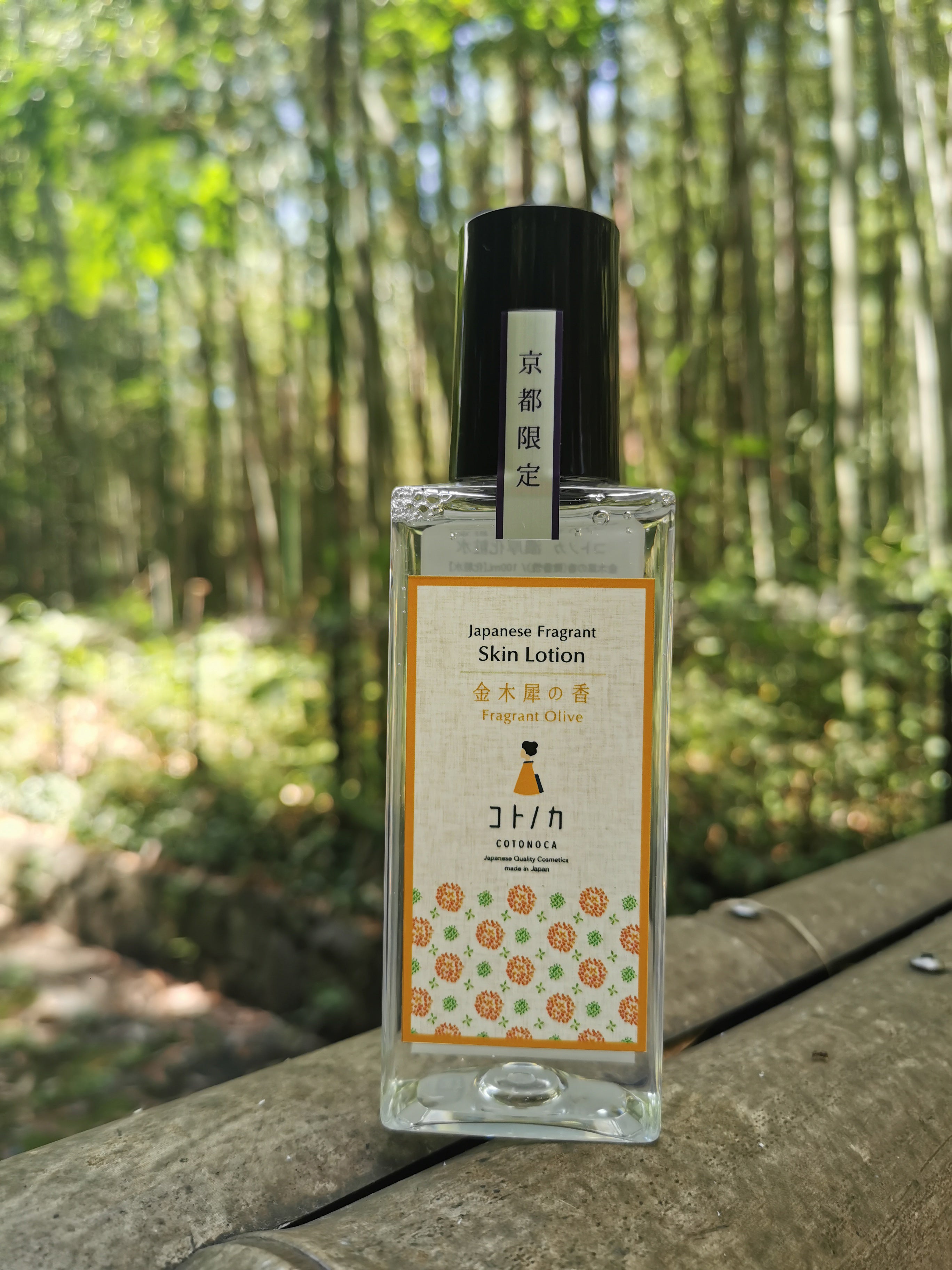 宇治茶由来成分(チャ葉エキス)や繭玉由来成分(カイコまゆエキス)、酒かすエキスなど京都産の「ええもん」をふんだんに使い、ヨモギ葉エキスや、大学研究から生まれた保湿・エイジングケア成分も配合しました。これ1本で化粧水も美容液も兼ねる濃厚化粧水です。そして金木犀の香りにもこだわり、使うたびにリラックスできるような、まるで顔に金木犀を浴びたかのような魅惑の香りに仕上げました。