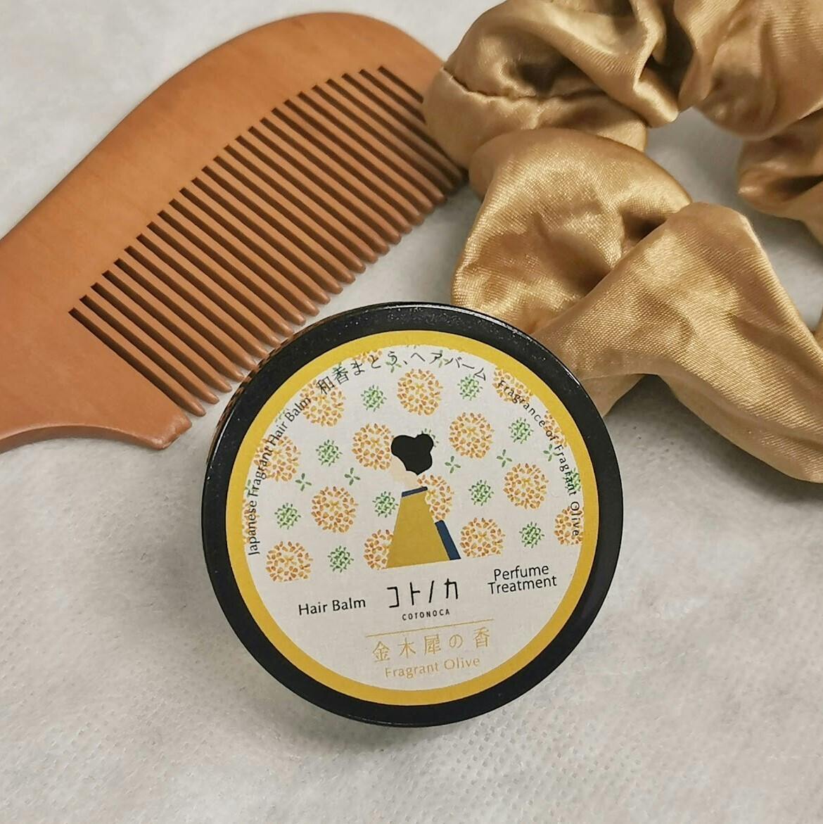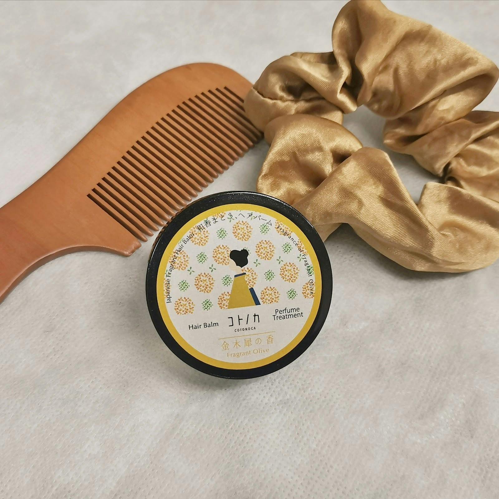ヘアバームは、従業員の「髪から金木犀の香りがしたら可 愛くない ???」という声から生まれました。防腐剤・アルコール・合成色素フリーで傷んだ毛先を滑らかに補修します。髪を結んだ時のおくれ毛につけてウェット感を出したり、前髪につけて抜け感を作ったり…。髪のサッとお直しやセットに大活躍でき、しかも動くたびに髪から金木犀の香りがする優れものです。