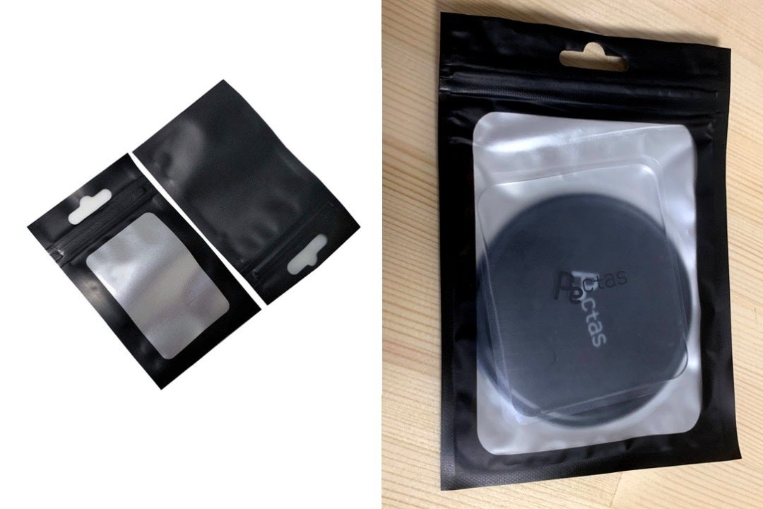 付属のビニル袋だと薄いので、もう少ししっかりした携帯袋があると、いつもバッグや自動車に入れて携帯できるとのことで、チャック付きの携帯袋を1セットに1つ付けました。