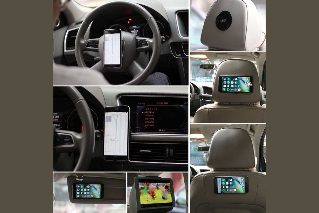 助手席の日除けに貼って情報収集に使ったり、社外で自動車に貼って自撮りなど、ダッシュボードに1枚入れておくだけで使い方は無限に広がります。