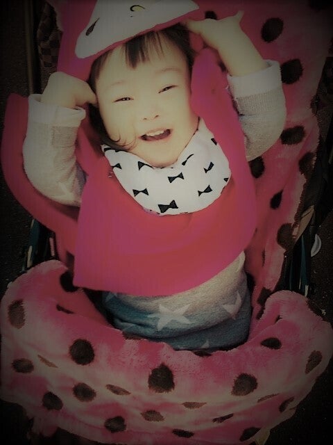 オーダーしたハンドメイドのスタイをつけてご機嫌なかのんちゃん