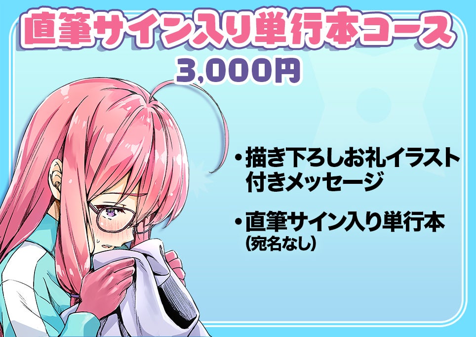 ※15,000円以上のオリジナルグッズコースは発送時期が異なる関係で、直筆サイン入りの単行本は付随致しません。直筆サイン入りの単行本とオリジナルグッズをご所望のご支援者様は、リターンの複数購入も可能ですので合わせてご検討いただけますと幸いです。
