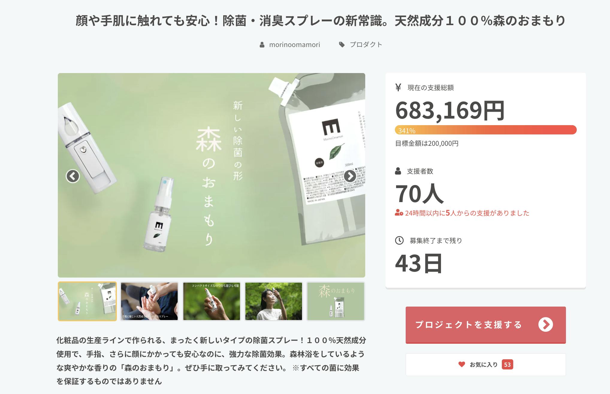この度は除菌・消臭スプレー『森のおまもり』のページをご覧くださいまして誠にありがとうございます。今回の製品をCAMPFIREさまのプラットフォームを通じてご覧いただけていることに心から感謝申し上げます。
