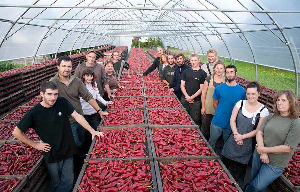 まず、味の要となるトウガラシを選定。世界中のトウガラシの中から、フランス・バスク地方の特産品であり、AOP認証のエスプレット唐辛子に白羽の矢が立ちました。