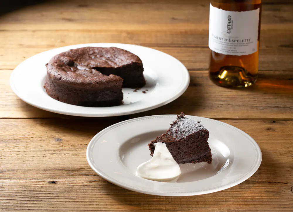 ピモン・デスプレット・リキュールを加えたガトーショコラは王道のおいしさ!チョコレートと唐辛子の相性は最高です!