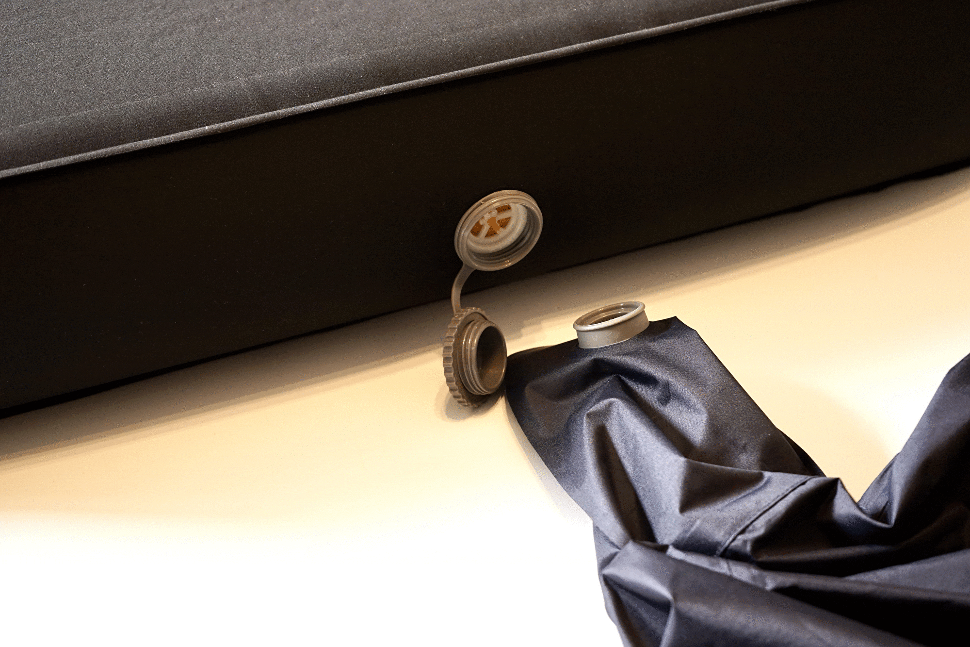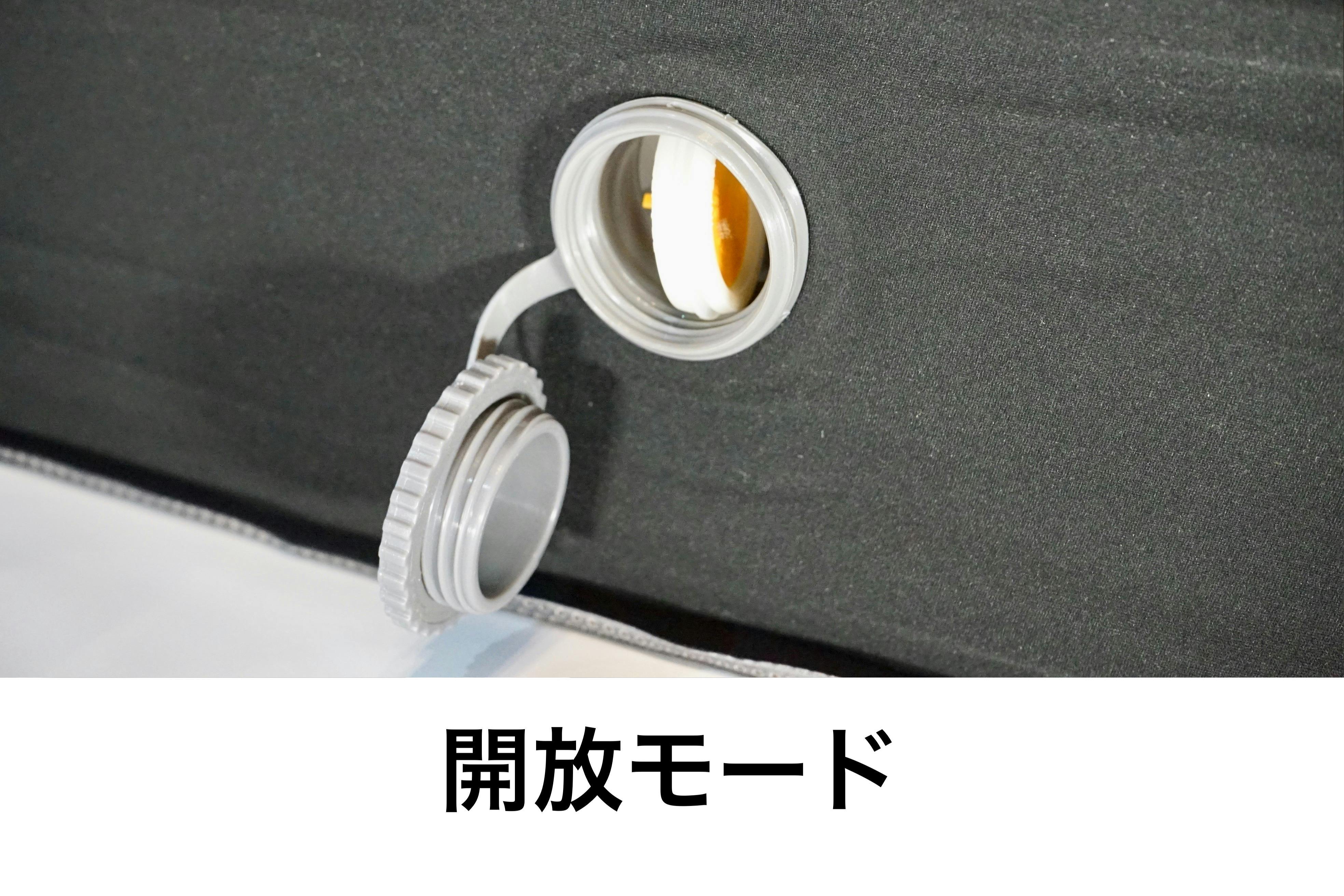バルブを開放モードにすると自動で空気が注入されていきます。5〜10分ほどで充分に膨らみますが足りない場合は空気を入れてください。