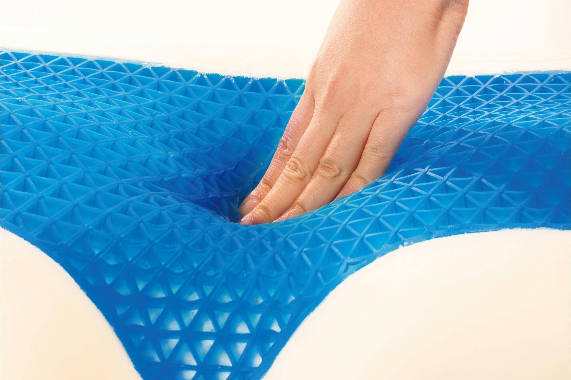 一般的な六角形のハニカム構造と呼ばれる構造とは違い、更に分割した独自のトライアングルメッシュ構造を採用しました。ゲル自体の密度が高くなる事で頭を心地よく支え、熱がこもりにくく快適な睡眠へ導きます。