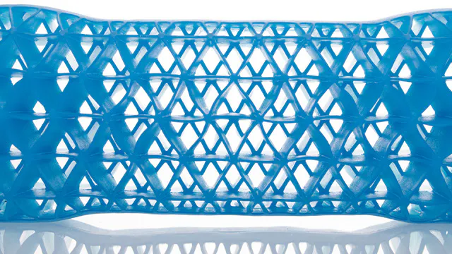 一般的な六角形のハニカム構造と呼ばれる構造とは違い、更に分割した独自の三角形メッシュ構造を採用しました。ゲル自体の密度が高くなり重たい頭部を枕の小さな面でも支えることが可能になりました。車で践んだ実験でもすぐれた復元力を証明!アウトドアに適したサイズと耐久性を実現することができました。