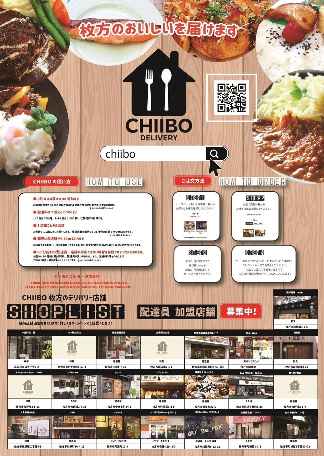 ②枚方市で使える、個人事業の飲食店の為の地域密着型デリバリー『CHIIBOデリバリー』を皆さんに知って、使っていただきたいです。