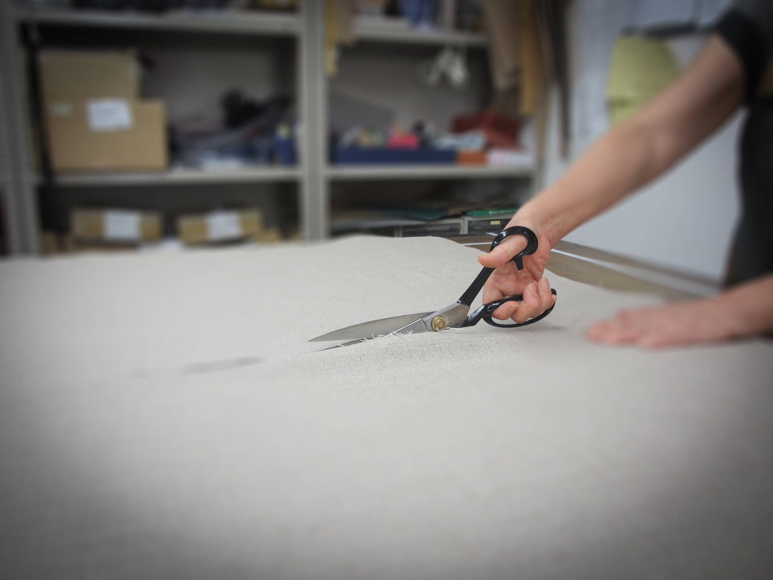 縫製工場といっても、特殊なミシンをたくさん持っている訳ではなく、KURAで作られるものはまっすぐに縫う直線ミシンと、アイロンがけや、繊細な手作業から生まれたものがほとんどです。