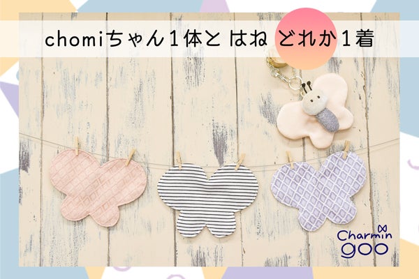chomiちゃん本体は含まれておらず、はねのみのリターンです。はねの柄は3種類あるので、 お好きな柄をお選びください。下の写真では左からピンクのレース、ボーダーカットソー、白のレースとなっています。送料・消費税込み