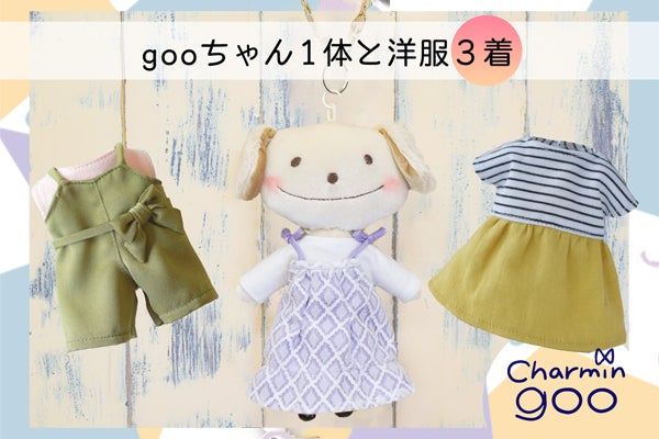 gooちゃん1体と洋服3着がセットとなるリターンです。3種類の洋服が全て含まれています。送料・消費税込み