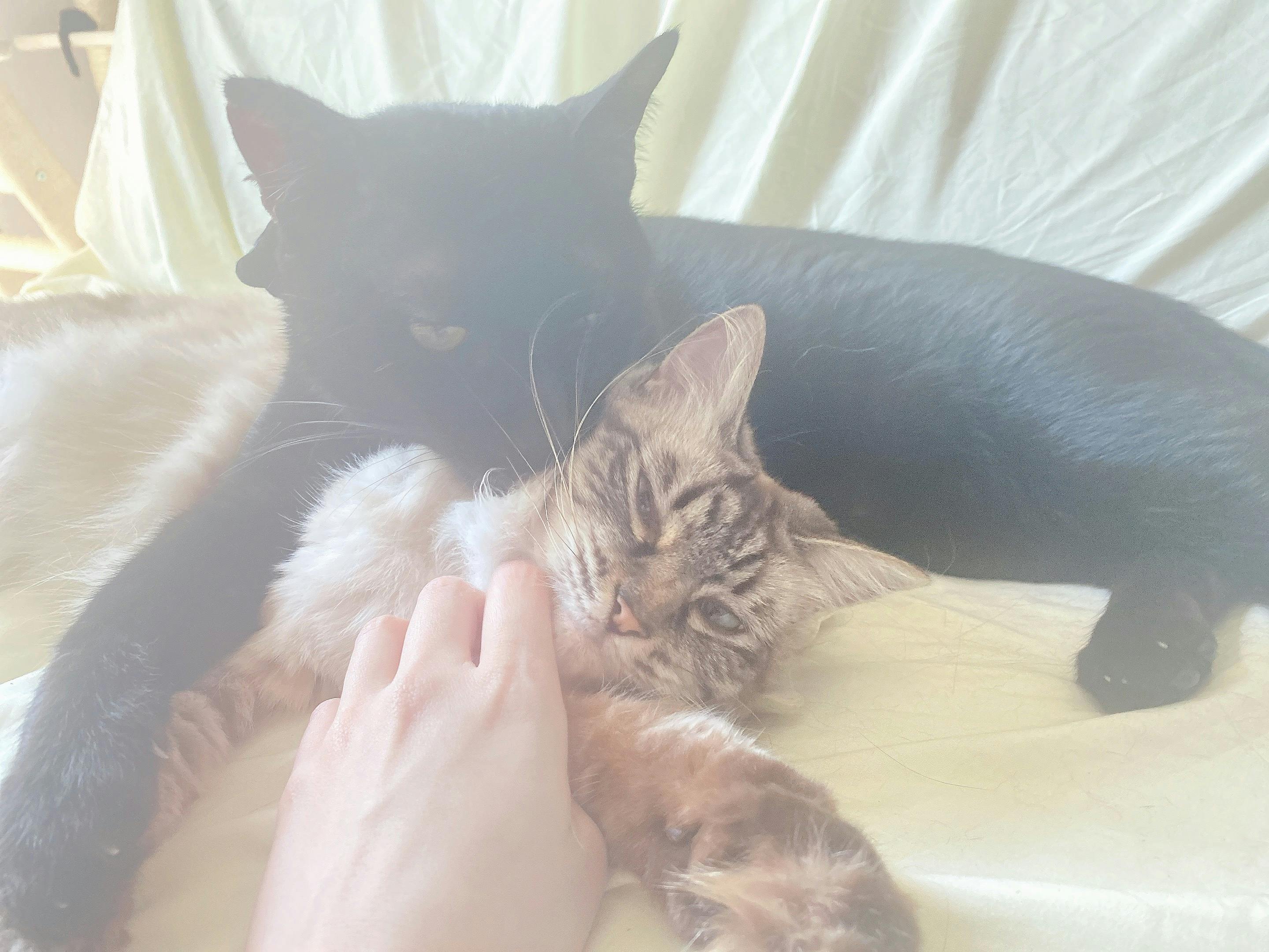 2022/09/18 16:29こんにちわ*こちらでは前記事の続き、新居地になってからのオムライスとメロンパンのようについてお話ししたいと思います。私はというとアルバイトでコツコツと資金を増やし少しづつアトリエの拡大を目指し引っ越しの荷造りから運び出しなどを進めバタバタとしていたのですが、もともと掃除機の音や配達員の方が来るだけでも大騒ぎな、とってもとっても怖がりなオムライス。普段は噛み癖もひどく暴れ馬な超絶内弁慶なオムライスなのですが中身はとても繊細なため正直引っ越しの移動も不安の一つではありました。そんな予想が見事に的中してしまい、荷物の運び出しを始めた頃からオムライスは自分のお気に入りの寝床から出てこないことが増えていってしまいました。※食いしん坊なので餌とお水はしっかり食べていました。とはいえあんなにやんちゃなオムライスがずっと静かにこもっているのはとても心配。運び出しが終わってしまえば広くなったお家で駆け回ってくれるかな?と安易に考えてしまいそのまま新しい新居へと移りました。ですが、オムライスからしてみるとずっと狭い1ルームの空間で育ち、そこで2年を過ごしたためオムライスの知っている外の世界はベランダから見える景色と毎日ご挨拶にくるカラスと雀たちが囀りを繰り返している様子だけ。急に知らないところに連れてこられ、広くなってしまった空間にオムライスは恐怖しかなかったようで、元のベットももちろん持ってきていて、場所を変えたりと工夫をしてみたのですがお気に入りのベットにも寝てくれず、結局クローゼットを力ずくでこじ開けてクローゼットから出てきてくれなくなってしまいました。私が近づくだけでもシャーーー!という威嚇の嵐。3日ほど様子をみてクローゼットにお水と餌は準備していたのですがみるみると元気がなくなって行ってしまい、鼻と手に瘡蓋のようなただれが起き始めてしまいました。少し甘えにきてくれた時の様子不安になり、今のオムライスを病院に連れていくこともオムライスにとってはストレスなんだろうと感じましたが命には変えられないので無理にオムライスを近くの動物病院へ連れていきました。獣医の先生に診察を受けたところ、感染ウイルス性、慢性のいずれかの原因を調べる必要があるとのことで検査の結果を待つ間、抗生剤と軟膏を頂いて帰宅しました。1週間後、検査の結果と再診のため病院を訪れ、診察を受けたところ、オムライスの皮膚からは感染ウイルスは見つからず、ストレスによる免疫力の低下から起こる慢性化した症状ではないかとのことでした。もともとの体質でストレスを感じやすく、そのストレスにより免疫機能が大きく低下してしまう病気のようでこの症状に完治はなくストレスで免疫が低下してしまうたびに治療が必要になるそうです。免疫疾患の一種。幸い命に別状はなく、一生付き合わないといけない体質ではありますがお薬も喜んで飲んでくれるのでようやく一安心。最初の頃は病院に行くのがわかると察知がとてつもなく早く、暴れ散らかしていましたが今では観念して大人しく病院へ向かいます*症状も、薬の投与は続けていますが落ち着いてきて今ではすっかり元のオムライスくん。2キロ痩せましたが体格はもっと大きくなりました(笑)獣医さんも「オムライスくん、大きいですね〜。今で2歳ならまだ大きくなりますね(^ ^)」と言われ。笑お母さん猫も野生の外猫さんでしたがすごく小柄だったのできっとお父さん猫が大きかったのでは?とのこと。お父さん猫は私も誰も知らないのですが太っていないのに体格の大きなオムライスを見る限り血筋だけは野生のハイブリットを秘めているんだろうなと思いました(笑)内面は小鳥のように繊細ですが、、、笑一方でメロンパン。広くなったお家、大きくなったキャットタワー、ベランダに窓も増え、毎日の探索に大忙し!お家広ーい!わーい!ベランダ広ーい!わーい!キャットタワーおおきーい!わーい!とでもいっているかのようにオムライスとは正反対に新居を謳歌するメロンパン(笑)怯え切っているオムライスにも「そんなんじゃ生きていけないよ?」とでもいいたげでした(笑)あんまりにも対照的な2ひきなので、ある意味それがいい意味で刺激になったのか今ではオムライスもベランダを覗いてみたりメロンパンのお尻にくっついて、私の目の届く範囲まではお散歩を楽しむようになりました*(物音が鳴るとシュッと帰ってこれる距離w)キャットタワーも、相変わらずの巨体で壊しそうですが楽しそうに使ってくれています*オムライスなりのギリギリのラインで日向ぼっこ(笑)余談ですがメロンパンはすごく豪快にバリバリバリっと何かを発散するかのように爪を研ぐのにオムライスはこしょこしょこしょ、、、と小さく爪を研ぎます(笑)そんな大きな手で猛獣のような立派な爪しててそんなので爪、研げてる、、、?笑 と思うほど(笑)メロンパンは女の子、オムライスが男の子なのです