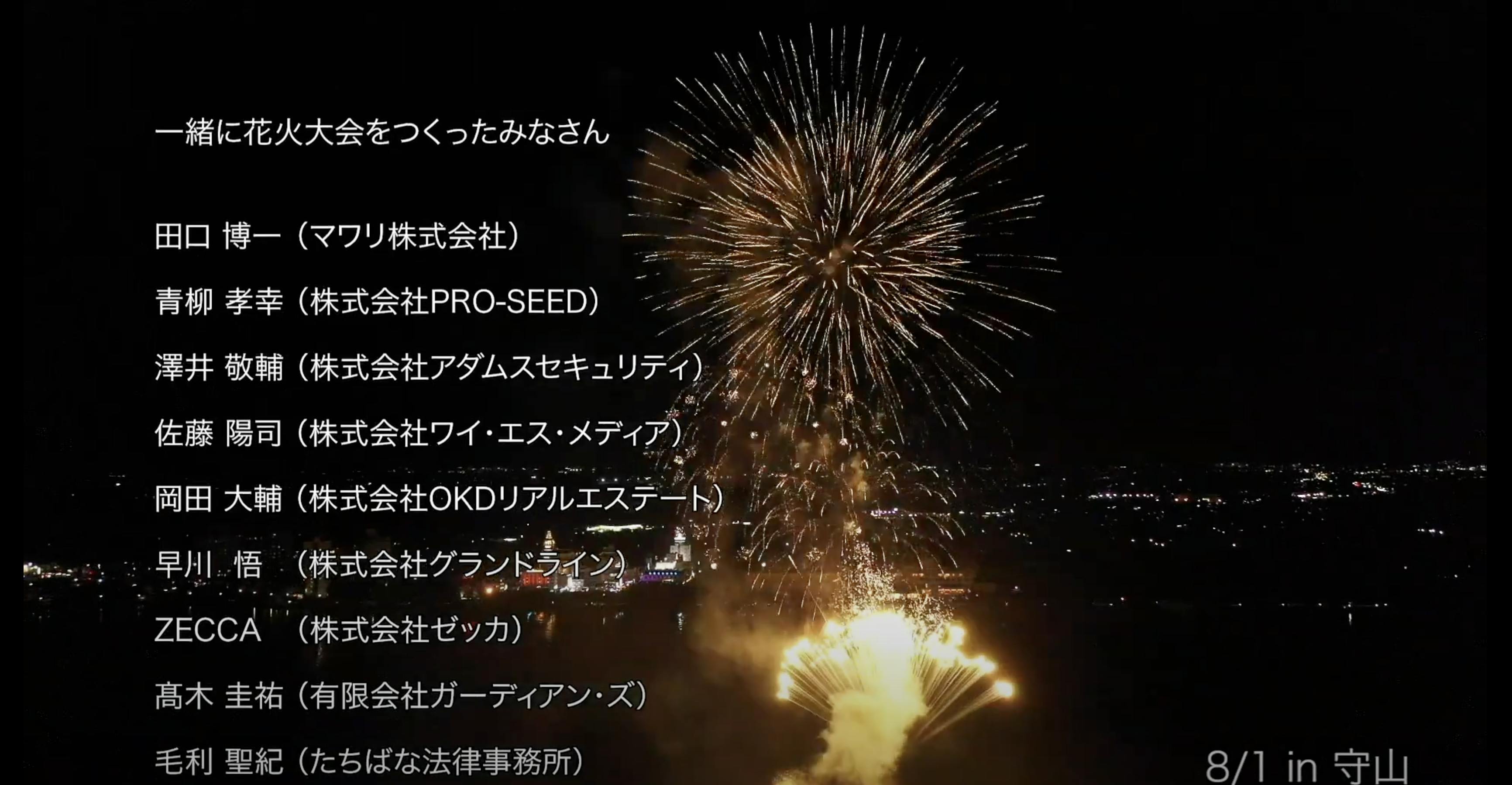 • ▲非密の花火大会inびわ湖一周プロジェクト2021コンセプトMovie みなさま,大変大変長らく待たせいたしました!!非密の花火大会inびわ湖一周プロジェクト2021のコンセプトMovieが完成しましたので、アップさせていただきます。今年は当日の打上げをお願いした県内花火業者の柿木さんと池本さんにインタビューを行い、当日の打上げに密着した様子を含めて一本のムービーにまとめましたので、是非ご覧ください。エンドロールにはクラウドファンディングでご支援頂いた方々や、企業協賛頂いた企業様の社名を掲載させていただいております。(リターン設定させて頂いた一定額以上のご支援頂いた方々になっております点、何卒ご了承ください。)昨年一回限りの予定だったこともあり、タイトなスケジュールと度重なる緊急事態宣言による延長などもありながら、多くのみなさまに支えられて実現することができました。本当にありがとうございました。心より御礼申し上げます。冬になってしまいましたが、今一度みんなの力でびわ湖に上げた花火に思いを馳せながら、来年こそは通常の花火大会が実施できますようにコロナの収束を願えればと思います。来年こそは、みんなで一緒に夜空を見上げて綺麗な花火が観れますように。                               プロジェクトメンバー一同 もっと見る