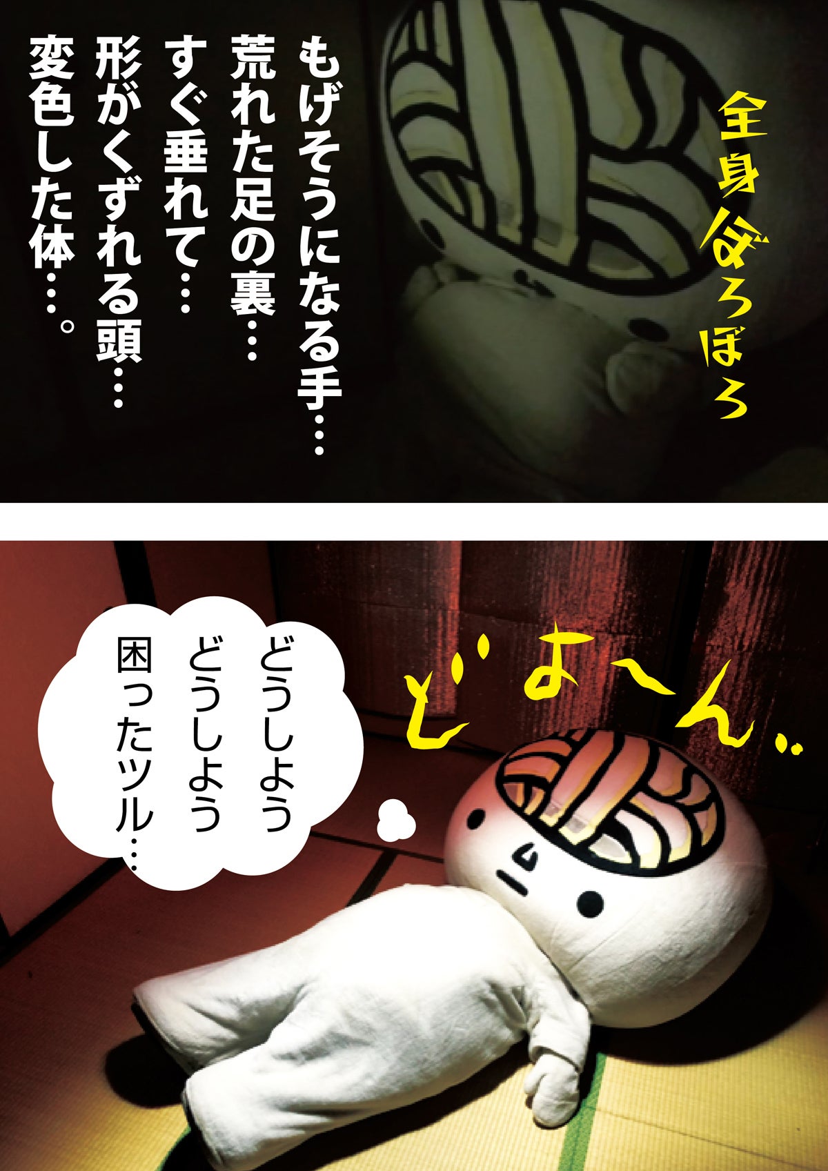 うどん脳は、10 年間の活動で、自慢のお肌はボロボロになり、白いうどん肌は変色してしまいました。