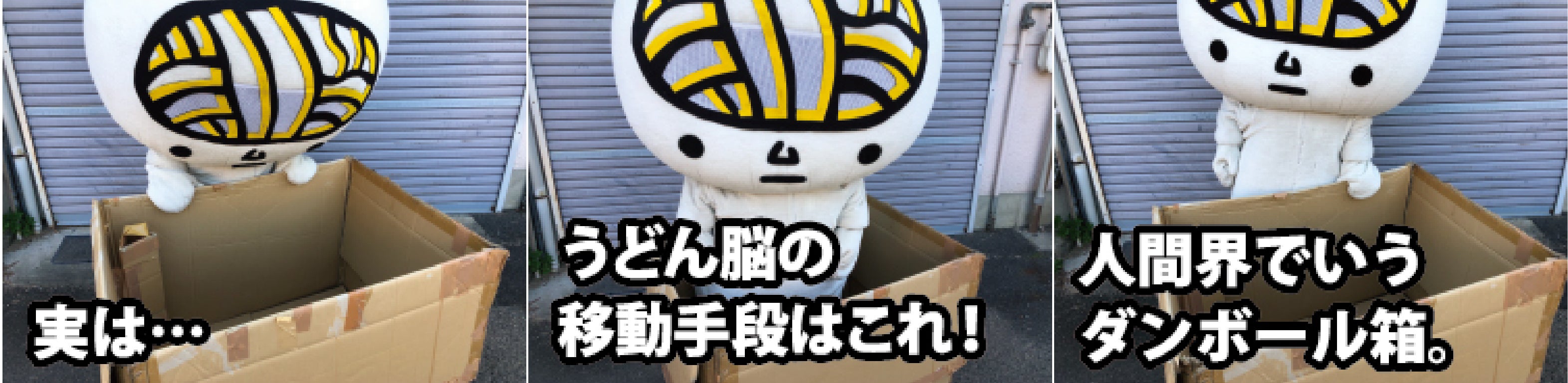 うどん脳は今まで、沢山のお仕事やイベントなどに出演しましたが、移動は大きなダンボール箱で、移動日数や交通費の確保などに苦戦していました。