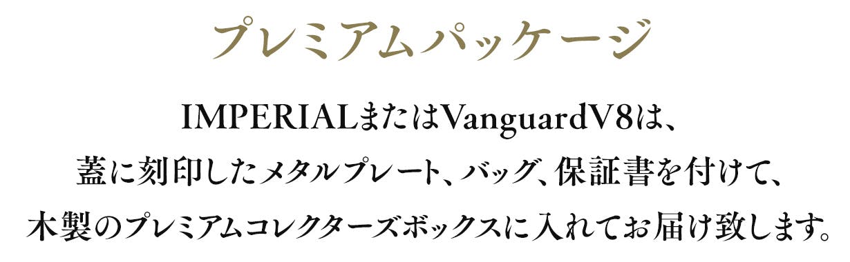 前回大反響の「THE IMPERIAL」「THE VANGUARD V8」商品ラインナップに加え、今回は日本先行販売となります、新作カラー・限定モデルをご紹介させていただきます。