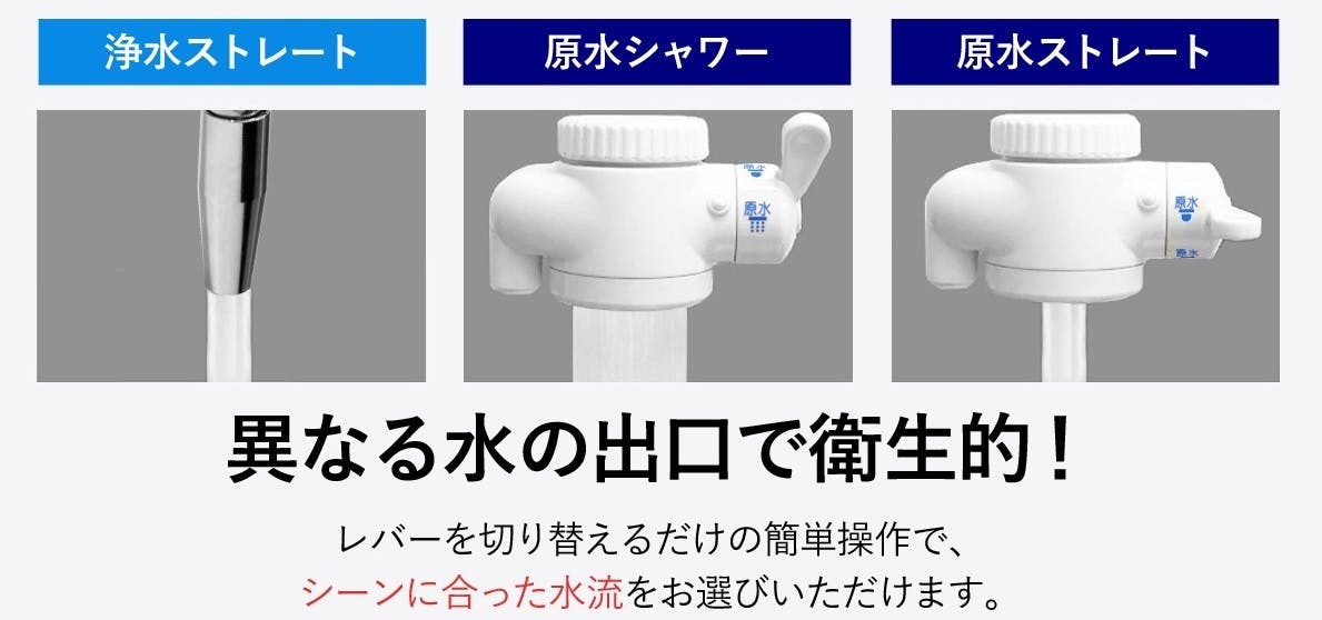 原水と浄水の出口が違うため、原水と浄水の汲み間違いを防止します。