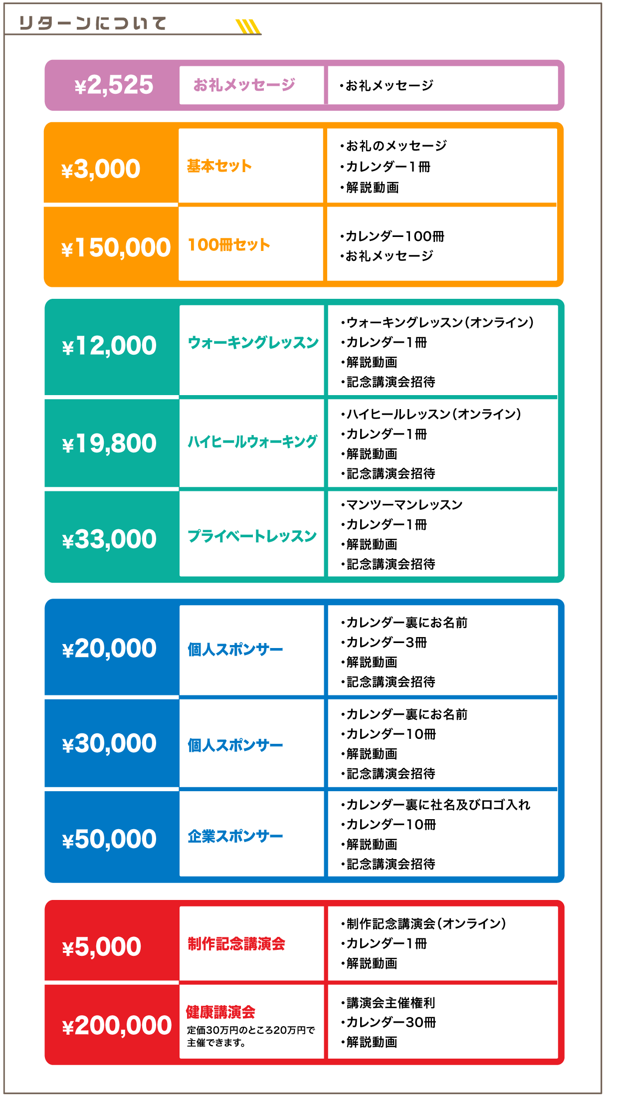 ●対価以外に必要な費用:プロジェクトページ、リターンに記載のとおり。
