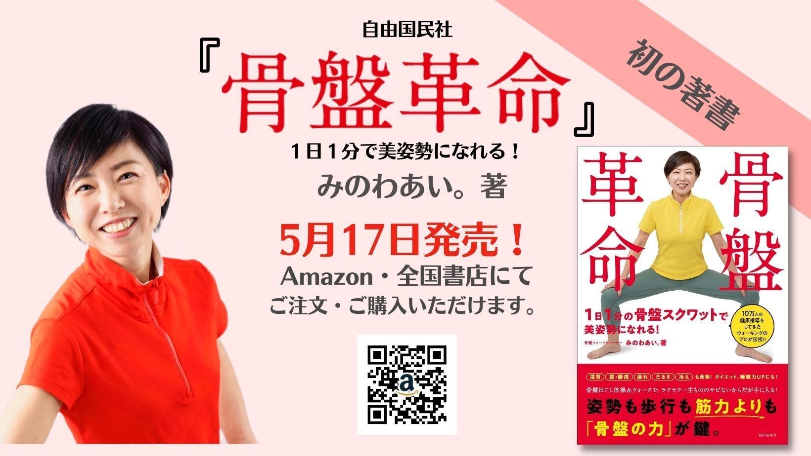 2022/05/17 19:07おかげさまです!私、みのわあい。のはじめての著書『骨盤革命 1日1分の骨盤スクワットで美姿勢になれる!』自由国民社本日、5月17日全国書店にて一斉発売となりました。おかげさまで、ありがとうございます。お近くの書店、Amazon等でご注文いただけます。-------------------骨盤スクワットは「骨盤本来の動きを取り戻すセルフケア法」です。骨盤はからだの中心に位置し、骨格の指令等となる大切な骨格です。骨盤がきちんと動くことで、姿勢が整い、ストレッチやウォーキングなどのパフォーマンスが最大限に発揮されます。ところが、運動不足や老化で骨盤周辺の動きが悪くなって、歪みなどが起き様々な不調の原因に。サビついて動きが悪くなっている骨盤周辺の動きを取り戻すためのセルフケアが「骨盤スクワット」です。【なぜ骨盤スクワットが日本人に大切なのか?】元来、日本の生活様式は「畳文化」です。布団の上げ下げ、ちゃぶ台で座る、和式トイレでしゃがむ行為など、腰を落とす動作が日常でした。この畳文化から、椅子やテーブル、洋式トイレの生活スタイルに移り変わってきます。実際、私がインストラクターを始めた約20年前の生徒さんたちは、骨盤スクワットを楽々とこなしていました。しかし、ここ10年ほどの生徒さんたちを見ると、骨盤スクワットがうまくできない人が増えていると実感しています。最近は、コロナ禍においてテレワークなど新しい働き方も定着しました。便利というメリットは、からだの活動量を減らすというデメリットをもたらします。また、しゃがむ機会が減ることは、心の安定とも深いつながりがあります。気持ちが「落ち着く」「ふんばる」というからだことばがあります。イライラしたり、怒ったときの感情を表す言葉も変化していて「はらが立つ」=肚(はら)から「むかつく」=胸、そして「キレる」=頭というように、どんどん気持ちが上に上がってきています。こうした時代だからこそ、しゃがむ動作を積極的に活用する骨盤スクワットが必要だと考えています。「骨盤スクワット」の解説動画です。チャレンジしてみましょう![骨盤スクワットのメリット]美姿勢になる、痩せやすくなる、美脚になれる、ヒップアップする、疲れにくくなる、腰痛の予防と改善、肩こり解消、胃腸の調子が整うなど、骨盤スクワットで、本来のからだの使い方がコンディションとプロポーションが同時に整ってきます!また、骨盤スクワットを応用させた「骨盤ウォーク」は、歩くだけで全身がリセットできる優れもの。1日たった300歩で、おなかから痩せる歩き方になります!人生100年時代いつまでも自分の足で歩くために、カレンダーと合わせて、ぜひ『骨盤革命』をご活用いただければうれしいです。 みのわあい。拝本日、ふうせんかずらさんの書棚『骨盤革命』ジャック!書籍の章ごとにマンガ解説を入れていますが、今回マンガと本文内のイラストは、みなさんにご支援いただいた「日めくりカレンダー」のイラスト描いてくださったねこまきさん(ミューズワーク)がお引き受けくださいました。本文中にもイラストふんだんに採用させてもらい、フルカラーで、私だらけのゴージャスな仕様になっております。末尾には、ご紹介した体操一覧を掲載していて復習がしやすくなっています。編集者の早草さんが、私の意を汲み取り懸命に編集してくださいました。ぜひ一家に一冊『骨盤革命』いかがでしょうか?ぜひ、よろしくお願いいたします。--------------------------------みのわあい。著書『骨盤革命』自由国民社は、Amazonまたは、お近くの書店でご注文いただけます。ご購入いただいた方は、お手元の書籍の表紙等写メをiwalkのLINE宛にお送りいただけましたら、ご購入特典動画、ライブ配信等のご視聴をプレゼントしております。--------------------------------[みのわあい。今後の活動予定]・5/28(土)13:00-15:00予定iwalkBOOKSで、ブックオーナーしているふうせんかずらさんで出版記念トークライブイベントを初のYouTubeライブにて配信予定です! もっと見る