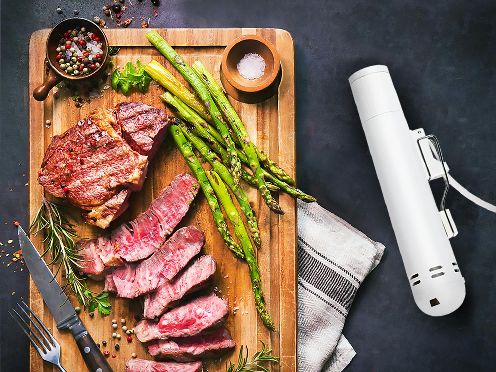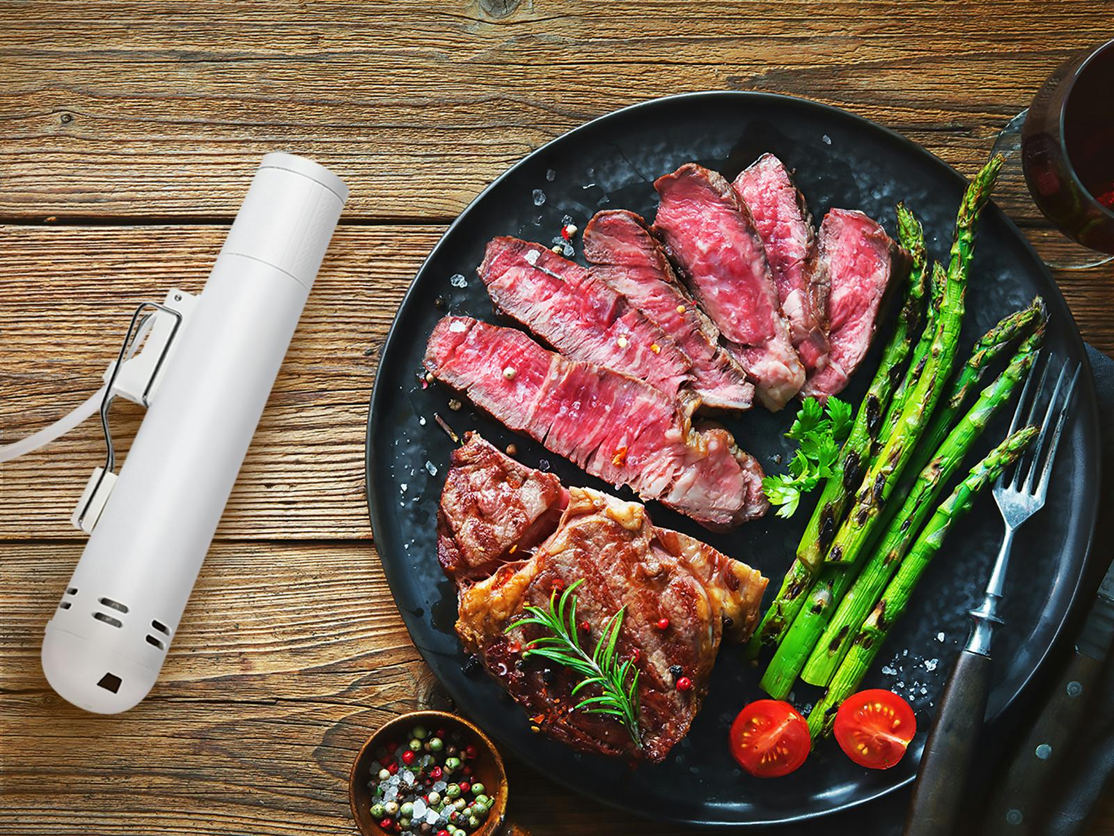しかも低温調理器は基本「ほっとく調理」。食材をセットしたら後は時間になるまでほっとくだけ。ステーキなら両面にさっと焼き目をつけるだけで即お店の味に!