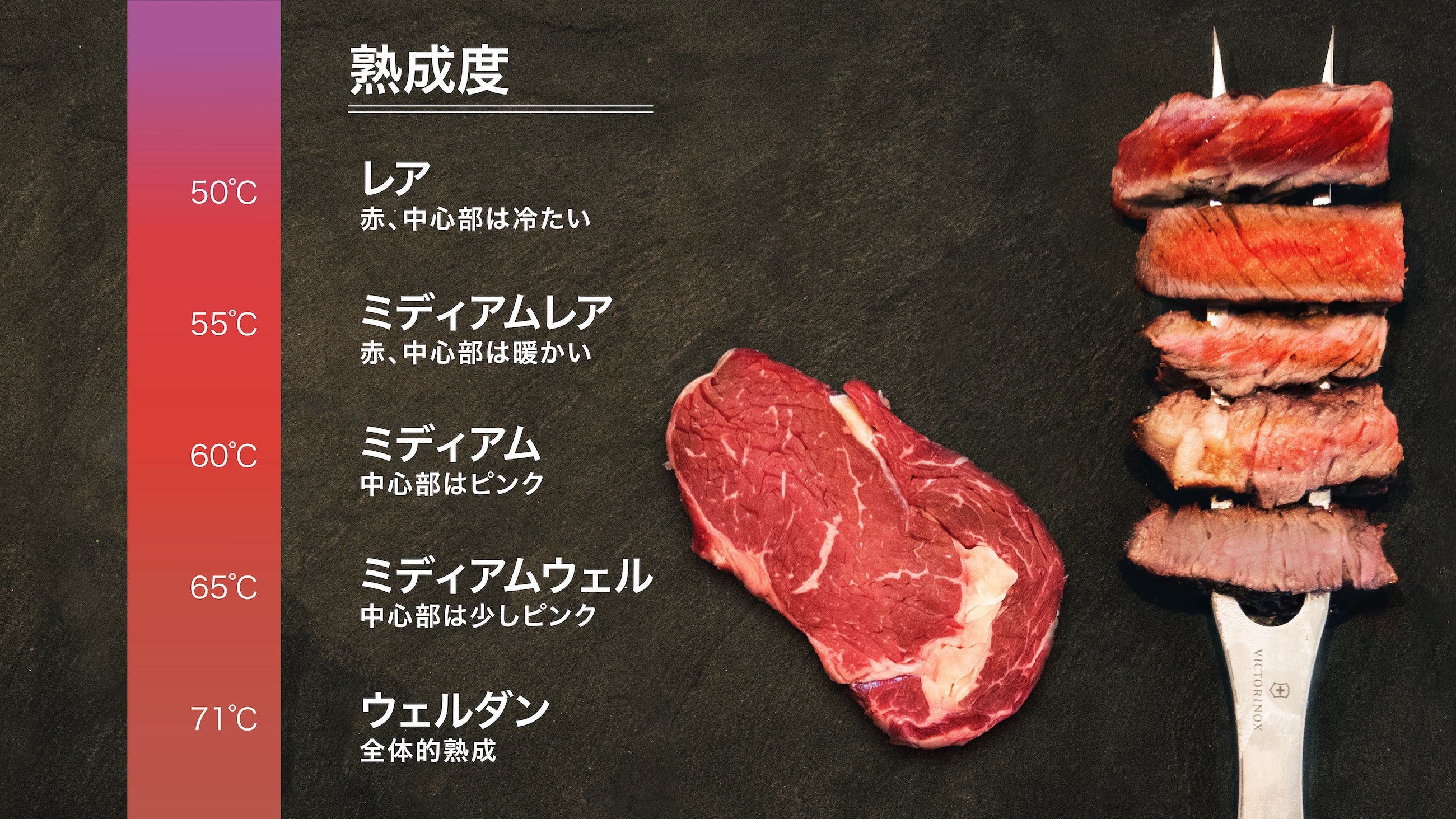 肉汁がたっぷりとジューシーで、肉の旨味が引き出される温度帯は「54℃〜57℃」あたりと言われています。
