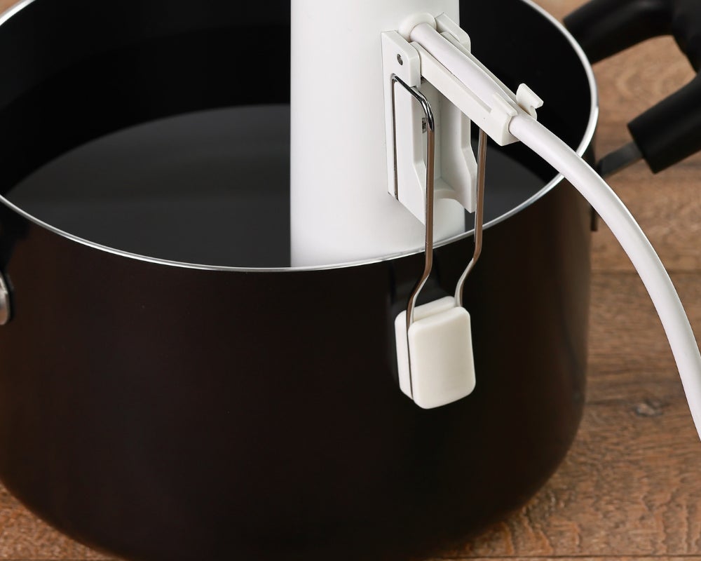 クリップ式のように鍋のフチだけでなく、鍋の真ん中にも設置できます。大量に調理する際も対流ムラが起きにくく、失敗知らず!