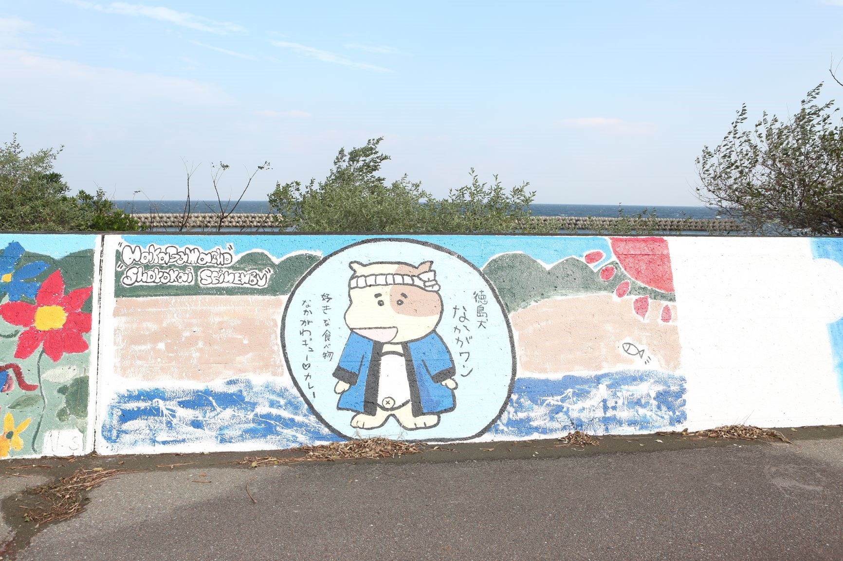 約30年前に町内外から7千人が集まり、1日で2.8kmの壁画を描き上げました。そして那賀川町の観光スポットになり、壁画を見に足を運ぶ人も多くいるぐらい賑わっていました。