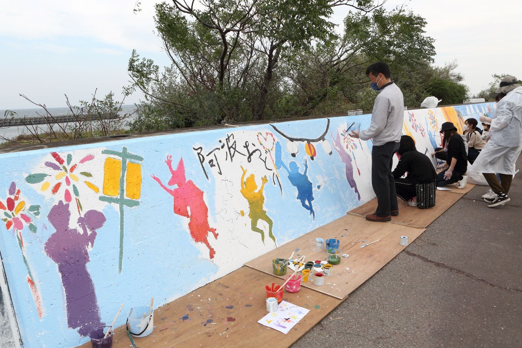 2021/11/11 12:4711月7日に令和3年度の「壁画再創造」を実施しました。前日までは天気予報は雨模様で当日への不安を抱えながら、話し合いや協議を進め、次第に前日夕方ごろから、予報が変わりはじめ、当日迎えました。結果、このように晴天に恵まれ、とても良い気候で開催することが出来ました。参加者の晴れ男、晴れ女の皆様、本当にありがとうございます!昨年同様、参加者の皆様には①事前検温の実施②参加者名簿の提出③マスクの着用④アルコール消毒の利用の協力をお願いし、新型コロナウイルス感染拡大予防の対策に努めての開催となりました。約300名の参加者が集まり、「秋」をテーマにした壁画を今年度は約250mにわたって描きました。参加者は各区画購入数分(1区画:縦1.25m×横3.3m)にハケと水性塗料を使い、家族や友人たちとペンキで服や顔を汚しながら、楽しく和気あいあいとした雰囲気の中で壁画を描いていました。そして、ハロウィン・さんま・お月見・秋の運動会など数多くの素晴らしい壁画が出来上がりました。■作品紹介(一部抜粋)■最後に今年で3年目に入った壁画再創造も終わり、合計650mの「壁画再創造」が完了しました。出島海岸の防潮堤に色鮮やかな壁画が連なり、写真撮影や散歩で楽しめる場所になってきております。また、地元ボランティアの方による防潮堤周辺の草刈りが進み、見間違えるほどに景観が良くなり、那賀川町の観光資源になりつつあります。しかし、2.8㎞の「壁画再創造」を完成させることが目標の私たちにとって、まだまだ道半ばであることには変わりありません。たくさんの人が帰り際に「楽しかったー。」「毎年ありがとうございます。」「来年もまた来るね!」等、たくさんのうれしい言葉をいただきました。そのような言葉を活力とし、これからもこのプロジェクトを継続していく中で、認知と支援の輪を広げること。コロナウイルスが終息した暁には、県内外からのお客様でいっぱいになるようなプロジェクトになるようにするにはどうしたらよいのか。など、課題や改善点はまだまだあるように思います。次世代の子供たちまでこの壁画を再創造できるように、語り継いでもらえたらと思っています。今後ともこのプロジェクトをご支援・ご協力のお願いをするとともに、温かく見守っていただければ幸いです。どうかこれからもよろしくお願い致します。出島壁画再創造プロジェクト実行委員会一同 もっと見る