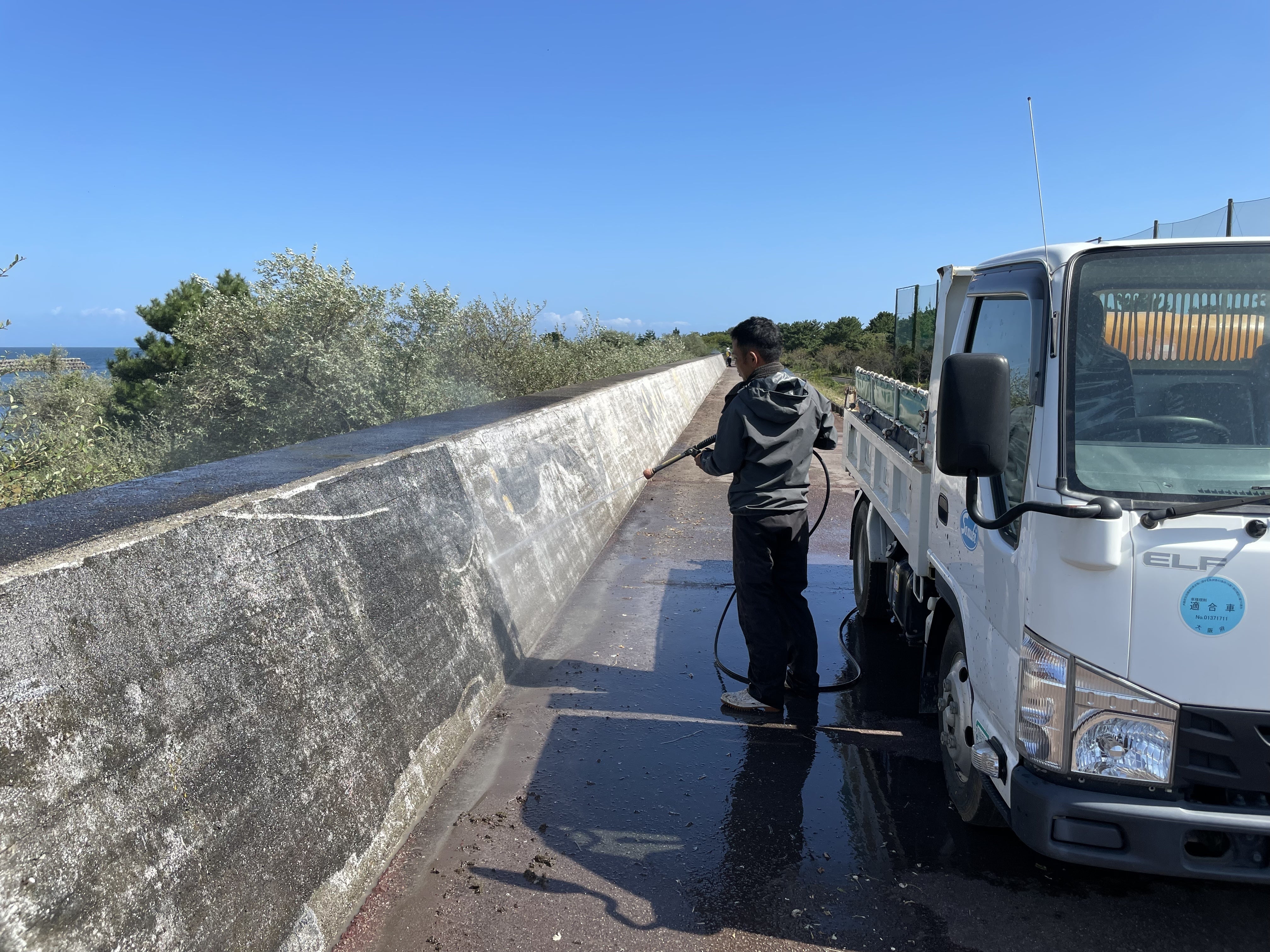 ・9月~10月:防潮堤の草刈り、防潮堤の下塗り