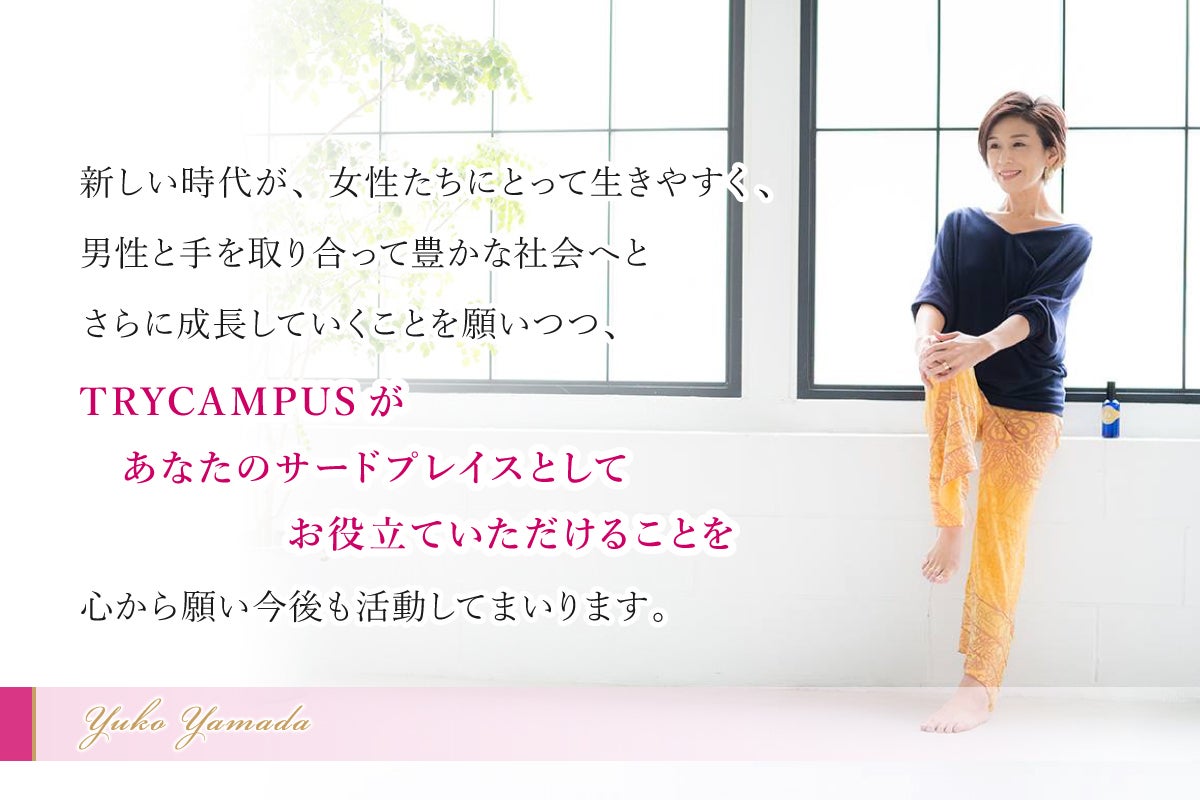 私は、TRYCAMPUSを通して、そんな課題を一緒に取り組み、前向きに自分らしく生きていく仲間とともに自己実現のサポートをしていきます。
