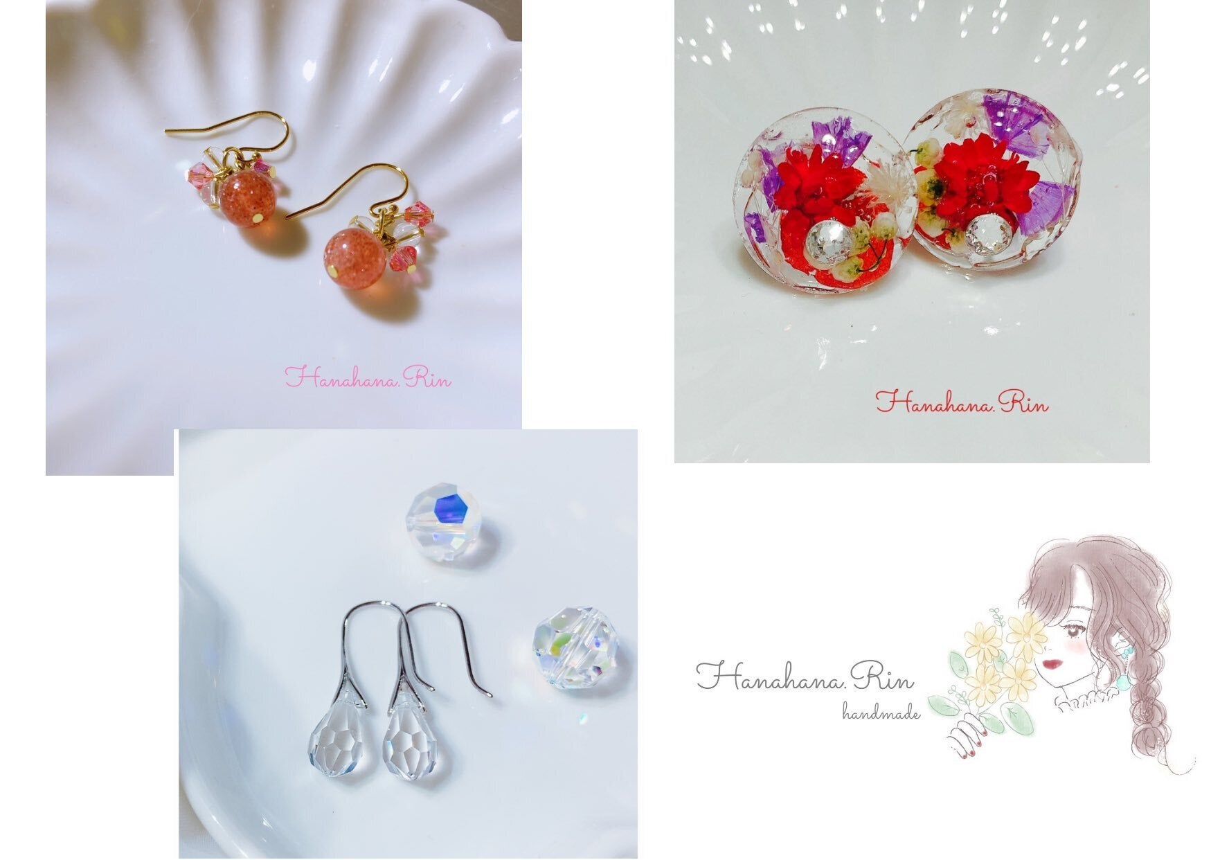 ・お礼状 ・ストロベリークォーツのピアス ・お花のピアス ・クリスタルスワロのピアス ・おまけ…ヘアピン ・1000円値引き券 ・バースデークーポン