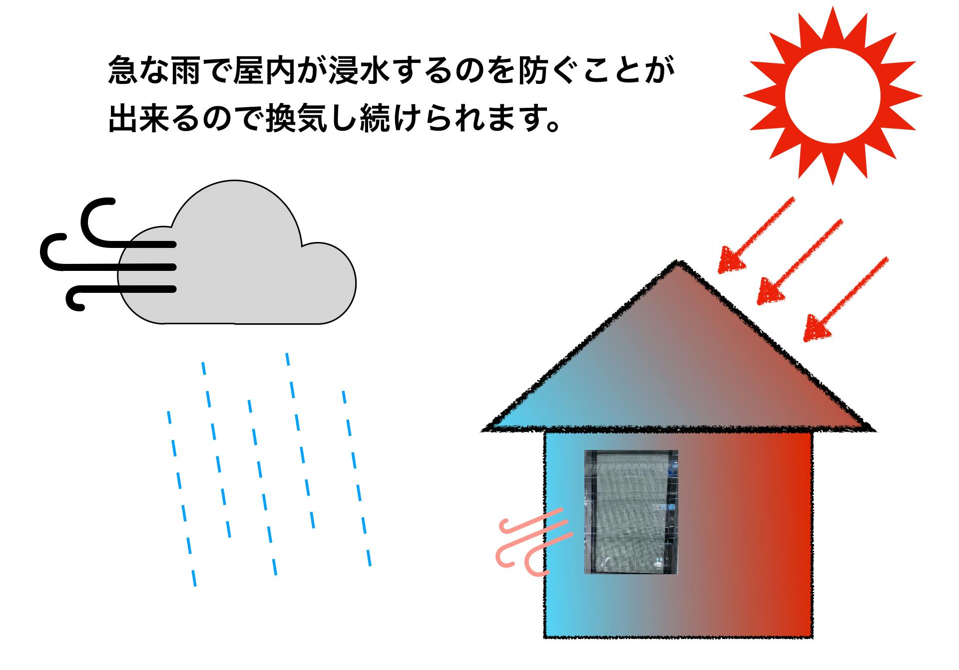 常に換気できない理由の一つとして急な雨による室内の浸水があげられます。