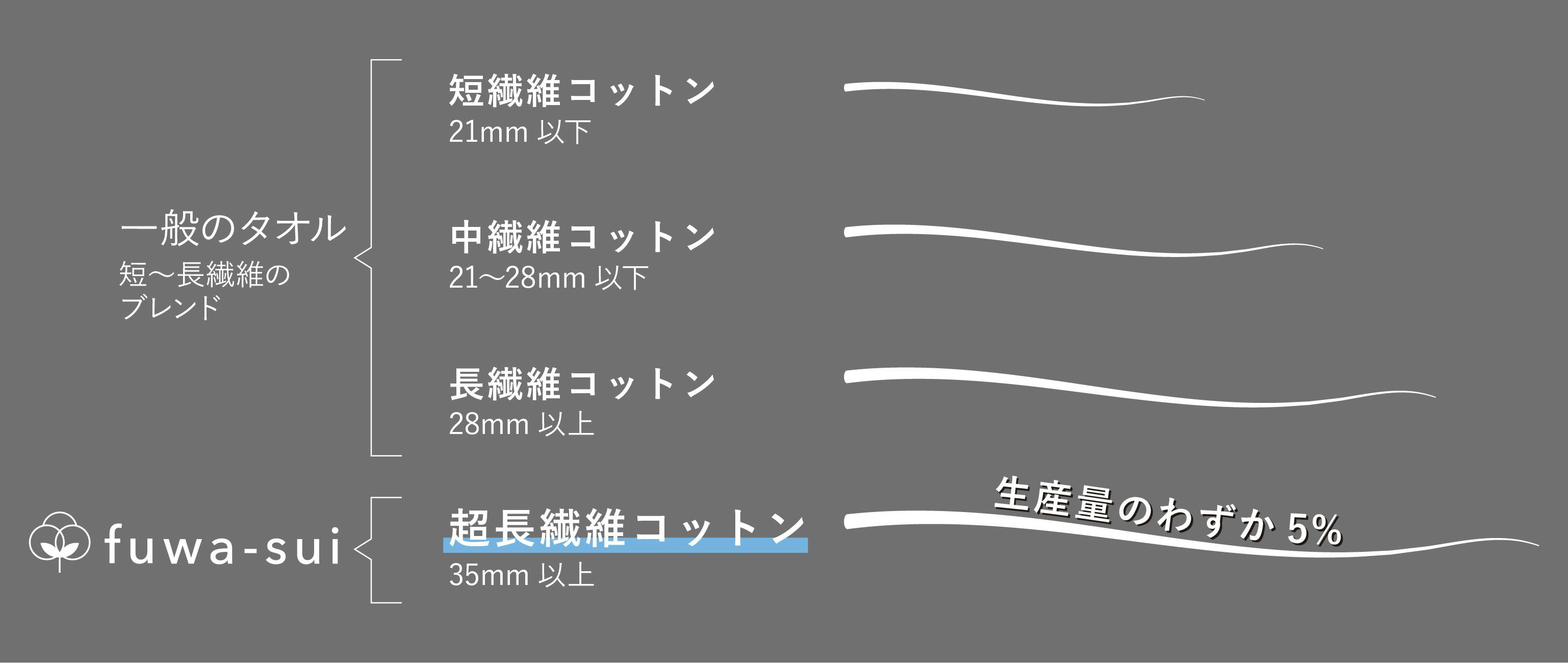 fuwa-suiタオルでは、超長繊維コットンにこだわって使用をしています。
