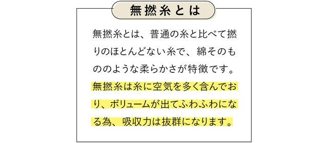 特徴④ 洗うほどふんわり空気を織り込む無撚糸(むねんし)タオル
