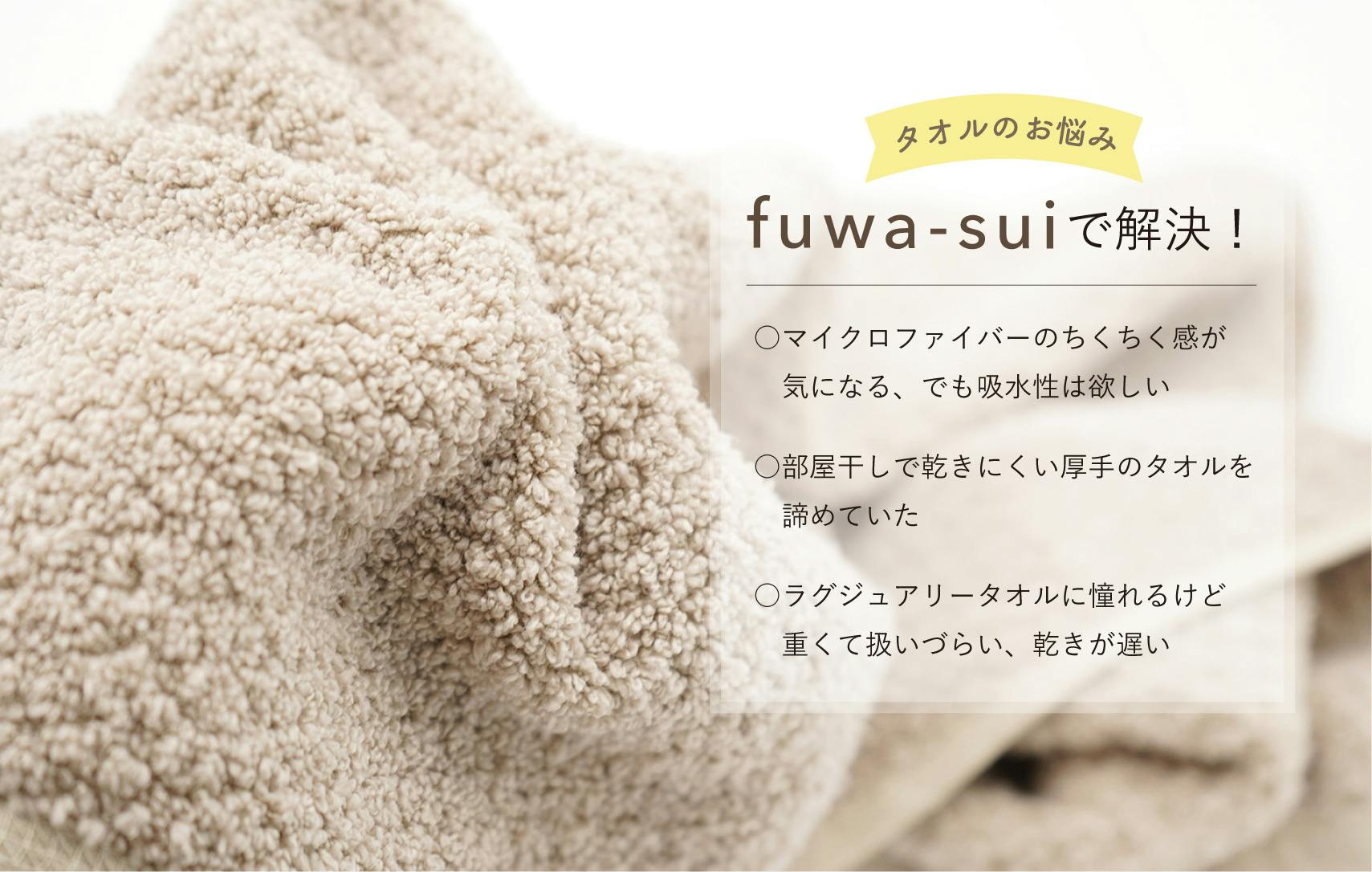 fuwa-suiの吸水性・肌触り・速乾性の3拍子が揃ったタオルをぜひお試しください。