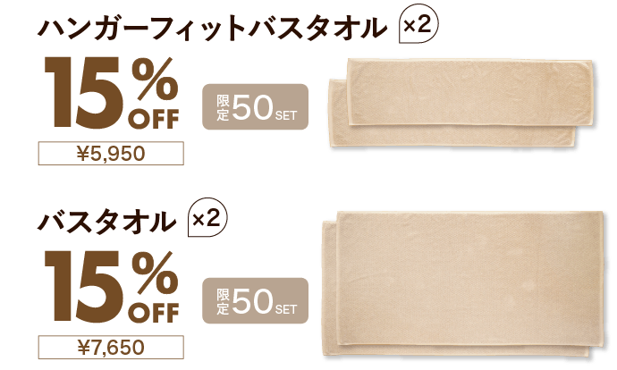 fuwa-suiの吸水力だからこそ1サイズ小さいバスタオルでも十分利用する事ができます。ハンガーフィットバスタオルは、幅がハンガーサイズに設計されています。