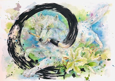 龍や霊獣を中心に描いています。最近では神話や日本の龍神信仰に触れながら、「龍」という存在を感じつつ描いています。私の描く神獣には植物がよく出てきますが、これは「神」という存在に自然の息吹を感じるからです。エネルギーのような、生命力のようなものを「植物」で表現しています。