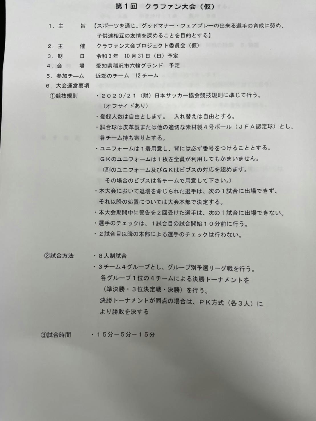 新型コロナ感染拡大防止の為に、公式戦や大きなサッカー大会が延期、縮小、中止が相次ぐ中、少しでも活躍の舞台、日々の練習の成果を発揮する場を作りたいです。
