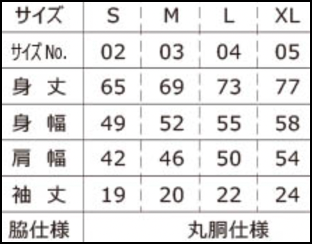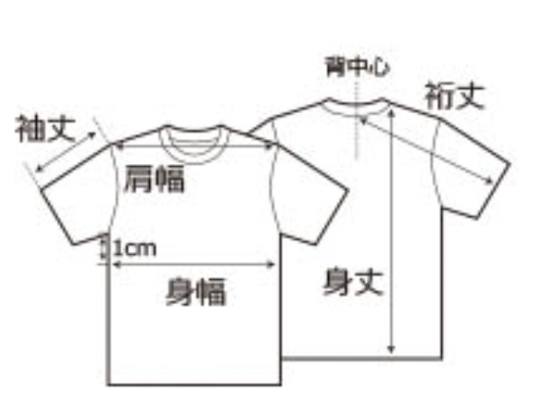※サイズ仕様詳細は本文下部の「Tシャツ仕様」を御覧ください